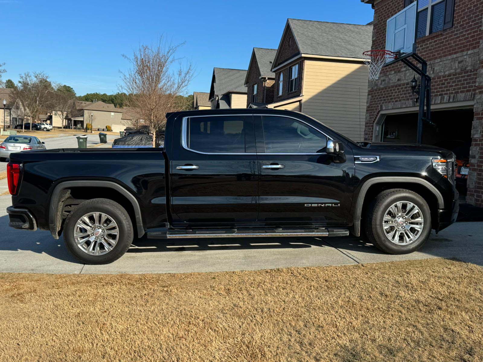 This 2022 GMC Denali presents full-size luxury truck refinement. Black paint reinforces bold styling. Power comes from a V8 paired with a 10-speed automatic transmission.